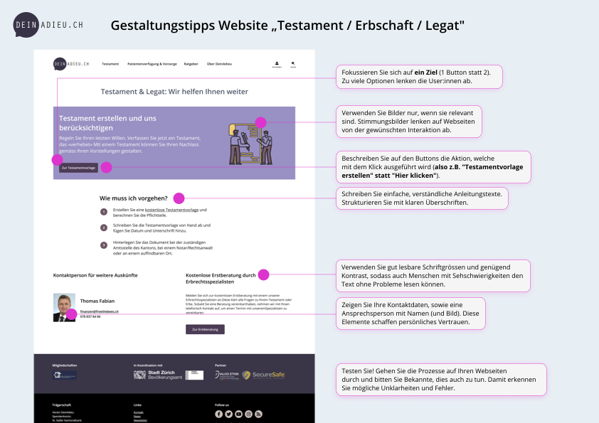- Vorsorgeauftrag: Erstellung von Vorlagen für Vorsorgeaufträge für Enduser:innen/Spender:innen